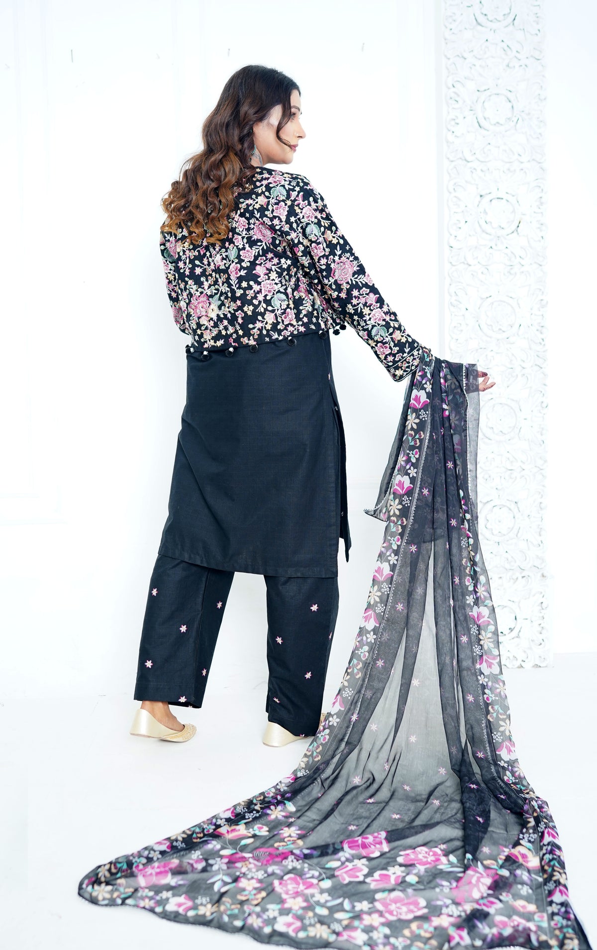 Shirt: Embroided Shirt, Duppta With Embroided Capri